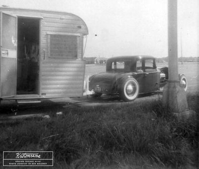 The car was stowed in September 1961 as Bob began his military service. In June 1962, he fabricated a trailer hitch and used the coupe to tow a 16-foot travel trailer all the way to Zion, Illinois. Along the way, the reversed rims failed and were welded back together by a local stock car racer. That September, Bob and his wife drove the coupe to Indianapolis for the National Championship Drag Races and Car Show. On the return trip, the driveshaft failed due to unhardened splines.[1]