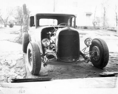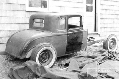 Not wanting to start from scratch, Bob tracked down the owner of the '32 and found that it was abandoned in the same garage, collecting dust and accruing past-due rent. "His offer to turn it over to me for back payment of garage rent at $425.00 was snapped up quickly." Expecting it to be 75% complete, Bob quickly realized it was closer to 20%. With permission to work at his future father-in-law’s property in East Weymouth, Massachusetts, Bob set up a temporary lean-to before moving the coupe into the main workshop.[1]