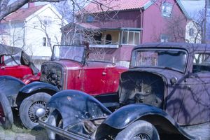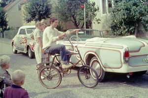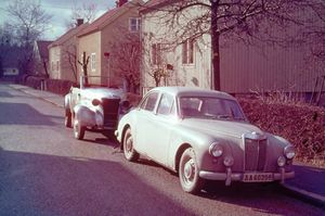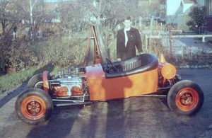 "Lill-Pelle" Karlsson was 8 years younger but one of the biggest admirers. He became aware of an old T-Ford abandoned in the woods. So with a flatbed moped, parts were picked up piece by piece and collected to Broberg's plot. The roof was cut away and the body was welded together into an open roadster. A Chevrolet engine ended up in the car and without money, but with a lot of help, Pelle finally got together what was probably Sweden's first T-threat! However, Pelle had a long way to go to get his driver's license so Sillarna had to take over the car and drove a little on the Skarpnäck field. What happened to the car later is unclear. Pelle also built one of Sweden's first Trikes and started the Trike factory in the barn together with Anders Lake.