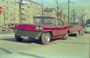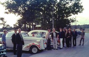 One of the first cars was a Chevrolet cab from 1938. It received a thorough renovation and was equipped with an Oldsmobile rocket engine. Bosse 'Gamen' painted in the newly moved garage on Flensvägen, and his girlfriend Karin "Morris" striped the flames. Unfortunately, the boys collided with a deer so the grill had to be redone. There were many wild long trips with the car all year round until it was sold in 1965.