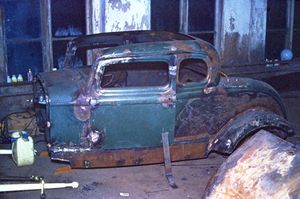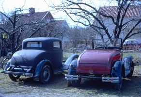 One of the first objects was a 1937 Ford Tudor coin-back that was taken apart and worked feverishly on the driveway. This was already in 1957 and the boys did not yet have a driver's license. What happened to the car is unclear, but reportedly the roof was cut off before it was sold on. The driver's license was taken in 1959, so now the vehicles could be driven reasonably legally.