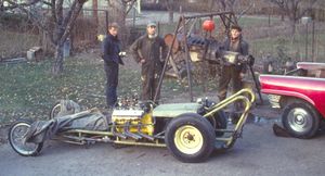 In 1961, Sweden saw a dragster for the first time. It was the "Moon" dragster built on a Dragmaster kit chassis and equipped with a CSB and Potvin compressor. Had been run at 8.97 ET on the strip but was now on tour owned and sponsored by Revell and Wentzels Hobby. The Kasby brothers were involved in the car being shown at the NK department store, and was a success. Hasse and Kjelle were deeply impressed and hurried home – now the dragster is to be built!